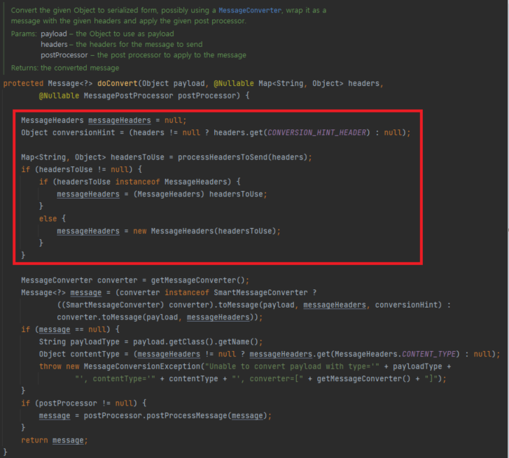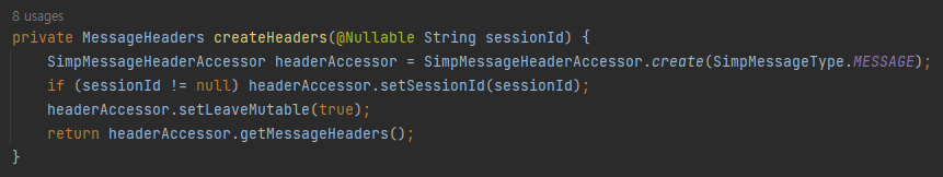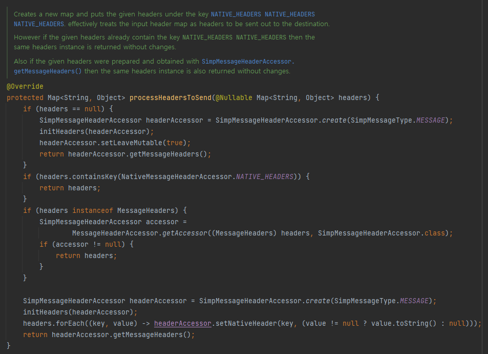 2. AbstractMessageSendingTemplate 은 메시지를 전송하기 위한 header 세팅을 별도로 진행 해준다.