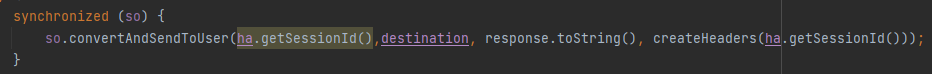 이게 메소드의 기본 구조인데, user 자리에 실제 유저의 sessionid, subscribe된 주소, 그리고 메시지를 담아 보내면 가볍게 전송이 완료될 줄 알았는데, 실제로 그렇지 않았다.