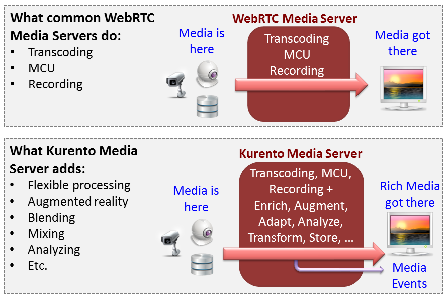 Kurento Media Server (이하 KMS)를 사용하게 되면, 브로드캐스팅을 위한 미디어 서버 구축을 스킵하고, 유저들간의 커넥션을 위한 signaling server만을 구축하면 되어서 구현이 쉬워진다.