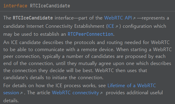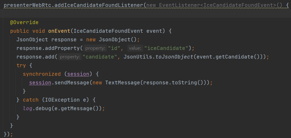 ICE 정보의 경우 이벤트 핸들러를 통해 정보를 받아와 presenter쪽으로 return해준다.